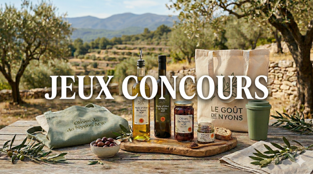 La Drôme Provençale recèle des trésors gustatifs uniques, portés par un savoir-faire séculaire. Afin de mettre à l’honneur l’excellence de notre patrimoine local, nous organisons un jeu concours exceptionnel intitulé « Le Goût de Nyons ». Une occasion privilégiée de découvrir ou de redécouvrir les produits phares de notre Appellation d’Origine Protégée.